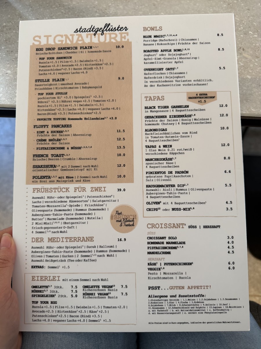 Stadtgeflüster Ulm | Café | Brunch | Tapas & Aperitif Menu